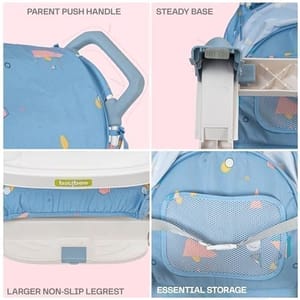 The Baybee 5 in 1 Baby Rocker is ingeniously designed to serve as a multi-functional unit, providing five different modes Rocking Mode, Walking Mode, Dining Mode, Cart Mode, and seat Mode that cater to the diverse needs of your growing baby. From a soothing rocking chair that lulls your infant into peaceful slumber to an interactive play area adorned with hanging toys, this chair effortlessly transforms to keep up with your child's developmental milestones. One of the standout features of the Baybee 5 in 1 Rocker for babies is its thoughtful design, which prioritizes both safety and comfort. The chair is constructed from high-quality, non-toxic materials that are safe for your baby to interact with. The sturdy base ensures stability, allowing your child to rock gently without any risk of tipping over. The chair's fabric is not only plush and cozy but also easy to clean, making it a practical choice for parents. As your baby grows and develops, you can effortlessly convert the chair to meet their evolving needs, making it a long-lasting investment for your family. The Baybee 5 in 1 Baby Rocking Chair is not just a piece of baby gear; it's an essential tool that promotes your child's well-being, offering a safe space for exploration, play, and relaxation. In addition to its functionality and safety features, the Baybee 5 in 1 Baby Rocking Chair boasts a vibrant and aesthetically pleasing design. The cheerful colors and charming patterns add a delightful touch to any nursery or playroom, creating a visually stimulating environment for your little one. The chair's compact size and lightweight construction make it easy to move around, allowing you to create different play zones within your home. The Baybee 5 in 1 Baby Rocking Chair is a remarkable blend of practicality, safety, and entertainment. It provides a nurturing space for your baby to grow, learn, and play, all while ensuring their safety and comfort.