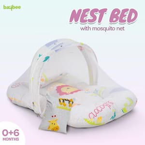 BNB4014-GYSERVE MULTIPLE PURPOSES - New born baby nest, baby lounger is perfect travel portable bedding mattress. Newborn lounger is perfect for co-sleeping. Baby nest co sleeper to serve multiple purposes such as rest spot, tummy time and travel mat, it's easy to carry around the house. Nest bedding set is a portable and travel bed, a play mat and even a co sleeper. This newborn lounger mattress with head pillow and mosquito net is designed to prevents the baby from rolling out of the bed, creates a safe space for baby to sleep in bed with parents. Your baby will surely longer and comfortable sleep in this soft baby lounger pillow. This is also perfect for co-sleeping as it provides a safe space for the baby on the parents bed. The newborn sleeping bed is made of super soft pearl cotton & Fiberfill as the filling's material, no harmful substances will cause any harm to the baby, better protection for baby's spine. Using thicker fabric, so there will be no problems such as deformation and fading after machine washing. Soft cotton printed baby mattress with mosquito net and pillow is perfect for 0-12 months babies with attached mosquito net allows fresh air to breeze in, while blocks out insects and mosquitoes and dust. The mosquito net bed make sure your infant gets a good nights sleep without the danger of insect bites. This bedding set is ideal for keeping your baby well rested and comfortable day in and night out. This set can be a great gifting option for a friend expecting mother or a baby boys & baby girls or as a baby shower gift, or for someone who already has a baby boy and baby girl. It includes Carry bedding set required for comfortably sleeping for your newborn baby.