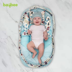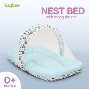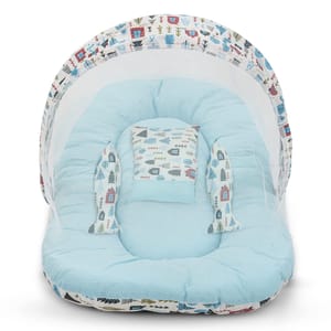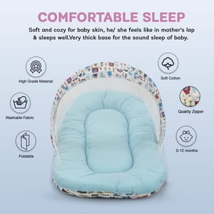 SERVE MULTIPLE PURPOSES - New born baby nest, baby lounger is perfect travel portable bedding mattress. Newborn lounger is perfect for co-sleeping. Baby nest co sleeper to serve multiple purposes such as rest spot, tummy time and travel mat, it's easy to carry around the house. Nest bedding set is a portable and travel bed, a play mat and even a co sleeper. This newborn lounger mattress with head pillow, 2 Bolster and mosquito net is designed to prevents the baby from rolling out of the bed, creates a safe space for baby to sleep in bed with parents. Your baby will surely longer and comfortable sleep in this soft baby lounger pillow. This is also perfect for co-sleeping as it provides a safe space for the baby on the parents bed. The newborn sleeping bed is made of super soft pearl cotton & Fiberfill as the filling's material, no harmful substances will cause any harm to the baby, better protection for baby's spine. Using thicker fabric, so there will be no problems such as deformation and fading after machine washing. Soft cotton printed baby mattress with mosquito net and pillow is perfect for 0-12 months babies with attached mosquito net allows fresh air to breeze in, while blocks out insects and mosquitoes and dust. The mosquito net bed make sure your infant gets a good nights sleep without the danger of insect bites. This bedding set is ideal for keeping your baby well rested and comfortable day in and night out. This set can be a great gifting option for a friend expecting mother or a baby boys & baby girls or as a baby shower gift, or for someone who already has a baby boy and baby girl. It includes Carry bedding set required for comfortably sleeping for your newborn baby.