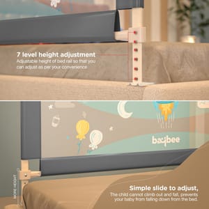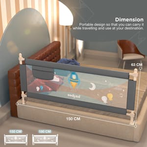 This bed rail is only used to prevent the baby from rolling down when they sleep. Please do not let the child alone when they wake up. With this baby rail safety guard your little ones will remain safe while enjoying their naps. This product makes use of quality materials for crafting that makes it strong and long lasting. Moreover, it is easy to install and works well with most mattresses. Features fun print for the babies. Now the little one can play or sleep happily and the parents can remain carefree. It is Portable Safety Guardrail for King & Queen Size Bed.