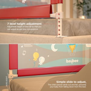 This bed rail is only used to prevent the baby from rolling down when they sleep. Please do not let the child alone when they wake up. With this baby rail safety guard your little ones will remain safe while enjoying their naps. This product makes use of quality materials for crafting that makes it strong and long lasting. Moreover, it is easy to install and works well with most mattresses. Features fun print for the babies. Now the little one can play or sleep happily and the parents can remain carefree. It is Portable Safety Guardrail for King & Queen Size Bed.