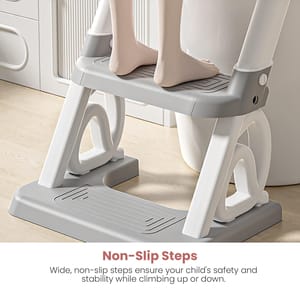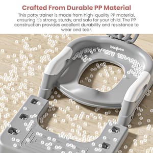BPT014-GRYCrown Potty Training Seat with Ladder Potty training can be a challenging milestone for both parents and children, but with the Crown Potty Training Seat, this transition can become a fun and engaging experience. Designed to support your little one s journey to independence, this potty training seat combines safety, comfort, and versatility, making it the perfect companion for toddlers aged 1 to 8 years. Universal Fit and Compact Design One of the standout features of the Crown Potty Training Seat is its universal design, which fits all standard and elongated toilet seats. No need to worry about compatibility; this seat adapts effortlessly to your home s toilet. Plus, its innovative foldable design allows it to be compactly stored when not in use, saving valuable space in your bathroom. Whether you're at home or traveling, this potty seat can be easily packed away, making it a convenient choice for busy families. Comfort Comes First Your child's comfort is paramount during potty training, and the Crown Potty Training Seat excels in this area. It is equipped with large, smooth armrests that fit perfectly in your child's hands, providing a secure grip for added confidence. The soft, removable cushion seat is designed to cradle your little one, ensuring a comfortable experience as they learn to use the toilet. With this level of comfort, your child will feel more at ease, encouraging them to embrace the potty training process. Adjustable Height for Growing Kids Understanding that every child grows at their own pace,