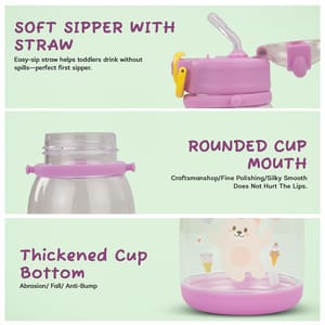 The Baybee baby sipper bottle for kids features both sipper & straw modes, ideal for toddlers learning to drink independently. Leak proof water bottle for kids with tight-seal lid prevents spills during travel or school use. Made from BPA-free, Non-toxic material, this sipper bottle for school kids ensures safe hydration daily. 550ml kids water bottle offers ample hydration for school, playdates & outings without frequent refills. Comes with a protective carry pouch and adjustable strap, perfect as a school water bottle for boys and girls. Fun cartoon print makes it the best sipper bottle for kids age 3+, encouraging regular water intake. Wide mouth and removable straw make this sipper water bottle for toddlers easy to wash and maintain hygiene. Trusted by Parents for 15+ Years, Baybee is India s leading baby brand, delivering safe, innovative, and joyful products loved by lakhs of families.