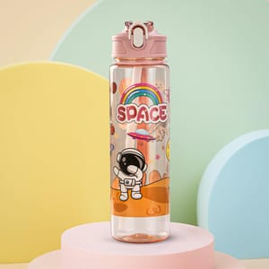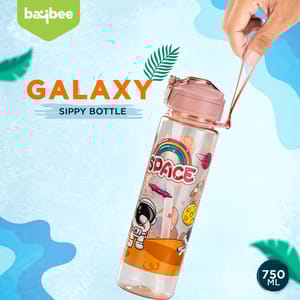 BAYBEE Galaxy Kids Water Bottle features an attractive space print with astronaut, rocket, rainbow, and shark designs—perfect for school kids, toddlers, and preschoolers.
