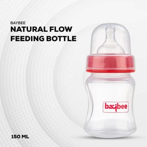 Baybee Natural Flow Baby feeding bottle is made up of safe & non-toxic, BPA-free food-grade material with a soft silicone tip for safety and durability. Every minor point is considered to give the safest product to your baby. It is Suitable for 3+ months of babies. The soft silicone nipple feels like skin, and gently elongates and flexes during feeding. The naturally shaped nipple with a Wide Necked and matte surface allows the baby to latch on easily without getting tired or slipping to the nipple tip. Our Natural Wave nipples are designed to reduce intake of air and potential causes of gas associated with colic to help baby while bottle feeding, a potential cause of colic. A tight-fitting lid that's perfect for travel keeps the nipple clean and prevents leakage, with easy-to-read measurements markings. Nipples are specially designed to naturally fit the baby's mouth. Holds pre-measured quantity to ensure the correct amount of formula for each feed. This bottle can be used to give expressed milk or prepared infant formula to your baby. Sterilize the bottle & accessories by placing them in a sterilizer or bottle warmer for at least 10 mins. Always wash immediately after every use Keep the teat in a dry & covered container.