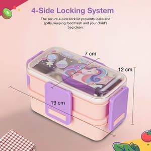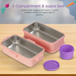 Make every meal exciting and organized with the Baybee Kids Bento Lunch Box, a perfect companion for school, daycare, picnics, or travel. This premium kids lunch box features two stackable compartments (500ml + 500ml) and a bonus 80ml dip container, ideal for carrying a balanced meal rice, pasta, fruits, snacks, or curries all in one leakproof box. Crafted from high-quality stainless steel and BPA-free plastic, this tiffin box for kids is food-safe, eco-friendly, rust-resistant, and built to last. The 4-side lock system with a silicone ring provides a 100% leakproof lunch box solution, ensuring food stays fresh and mess-free all day. The fun dinosaur design adds a playful touch, making this school lunch box for boys and girls more appealing to kids. Lightweight and compact, it fits easily into backpacks and is perfect for toddler lunch box, travel lunch box, or even a picnic box. The removable steel trays make it easy to clean and maintain. Whether you're packing meals for preschool, kindergarten, or primary school, the Baybee bento lunch box offers the ideal mix of durability, safety, and fun. It s a great choice for parents looking for a durable lunch box, leakproof bento box, or healthy kids meal container for daily use.