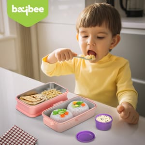 BGLX01-16-PKMake every meal exciting and organized with the Baybee Kids Bento Lunch Box, a perfect companion for school, daycare, picnics, or travel. This premium kids lunch box features two stackable compartments (500ml + 500ml) and a bonus 80ml dip container, ideal for carrying a balanced meal rice, pasta, fruits, snacks, or curries all in one leakproof box. Crafted from high-quality stainless steel and BPA-free plastic, this tiffin box for kids is food-safe, eco-friendly, rust-resistant, and built to last. The 4-side lock system with a silicone ring provides a 100% leakproof lunch box solution, ensuring food stays fresh and mess-free all day. The fun dinosaur design adds a playful touch, making this school lunch box for boys and girls more appealing to kids. Lightweight and compact, it fits easily into backpacks and is perfect for toddler lunch box, travel lunch box, or even a picnic box. The removable steel trays make it easy to clean and maintain. Whether you're packing meals for preschool, kindergarten, or primary school, the Baybee bento lunch box offers the ideal mix of durability, safety, and fun. It s a great choice for parents looking for a durable lunch box, leakproof bento box, or healthy kids meal container for daily use.