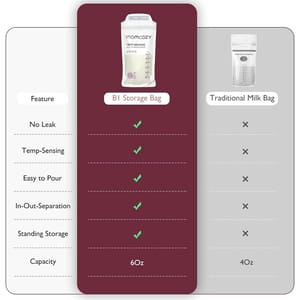 69386f9fb746739ca0fcbc00 Momcozy Maternity Accessory Breastmilk Bag 50pcs Transparent https://www.momeaze.com/s/62960a9d8f900ec4105c601b/69c3ddfc556e45bd9690c00f/download-id-1myukdoii8-kryisk2xt46shv8twka4y.webp MomCozy Breastmilk Storage Bags – 50 pcs (180ml) TEMP-Sensing Discoloration for easy monitoring of milk temperature. Double strong sealing with double zipper and sealed side seams for safe freezing. Zero contamination design with separate import/export openings. Space-saving design for flat or upright storage. BPA/BPS-free and pre-sterilized for safe milk storage. Suitable for moms. MS002-NA00NB