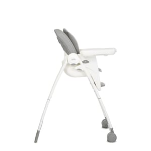 6 modes including baby mode highchair, traditional highchair, booster, portable booster, toddler chair and play table 5 height adjustments Seat and frame fold compactly and stand when folded Extra large tray with one-hand release 3 position adjustable tray with cup holder Full coverage dishwasher safe tray insert doubles as a placemat Clever tray storage on back of legs 3 position seat recline Removable, washable, soft infant insert Removable, wipeable seat pad 3 position height adjustable footrest Integrated wheels on front legs SoftTouch, 5-point harness Open Size: l 82.5 cm x w 64.8 cm x h 107.3 cm Folded Size: l 35.5 cm x w 64.8 cm x h 106.8 cm Product Weight: 12.2 kg Product Usage: 6 to 72 months Testing Certification: EN 14988:2012