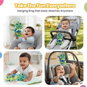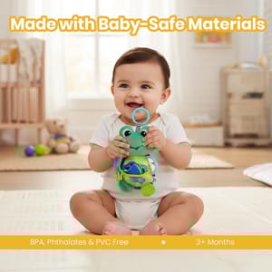 A fun see-through pocket holding a crinkly fish toy for interactive surprise play.