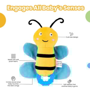 NU-I-0037Bright, soft, and delightfully crinkly, the Nuluv Crinkly Bee is the perfect sensory toy for babies aged 3 months and older. Crafted from plush, baby-safe fabric, this cheerful bee features built-in crinkle sounds in its wings and body to spark auditory curiosity and sensory development.With its eye-catching colors and soft, squeezable shape, Crinkly Bee is ideal for playtime, tummy time, and soothing snuggles. Lightweight and designed for little hands to explore, it makes a thoughtful gift for newborns and a charming companion for early milestones.