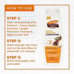 4802Delivery in 5-7 working days Strengthen and Length Retention: This conditioner fully strengthens hair with powerhouse natural protectants that help block fragileness, brittleness, breakage and split ends to help hair achieve its optimal length Hydrate and Detangle: This rich, creamy, silicone and sulfate free conditioner wraps the hair shaft, creating a protective shield to deeply strengthen, hydrate and instantly detangle For Optimal Length: Biotin supports healthy hair growth, and Quinoa Protein protects the hair shaft from heat damage that can cause breakage; This expert blend retains length for beautiful, long, shiny hair Choose What's Real: Our beauty products and hair and skin treatments feature real, plant based ingredients in formulas that really work to hydrate and soften, from lip balm to bar soap to body butter Palmer's: Our Cocoa Butter, Coconut Oil, Shea Butter, Olive Oil, and Vitamin E product lines include creams, balms, lotions, oils and soaps plus face, lip, and hair care, pregnancy and stretch mark care.