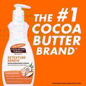 Delivery in 5-7 working days Smoothes & Softens rough, bumpy skin with AHAs. Lactic Acid and a natural blend of Cocoa Butter, Coconut Oil, Shea Butter and Vitamin E 48 hour moisture Vegan Friendly - no animal ingredients or testing Dermatologist Approved, Clinically proven results Free of Parabens, Phthalates America's #1 Cocoa Butter brand After 4 weeks* 100% saw improved skin texture, 100% improved skin smoothness, 94% reduced appearance of bumpy skin Perfect for areas prone to bumpiness such as upper arms, outer thighs or buttocks