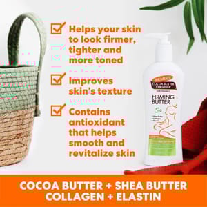 Delivery in 5-7 working days Palmer's Cocoa Butter Formula Firming Butter, a unique formula that is specifically designed to help visibly restore your body, especially after pregnancy or weight loss. The unique combination of Cocoa Butter, Collagen, Elastin and Shea Butter firms and tones while helping to visibly improve skin's texture. In addition, Ginseng and Vitamin E help soften and relieve stressed skin. Co Enzyme Q10 is an antioxidant that helps smooth and revitalize skin.