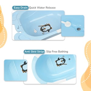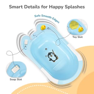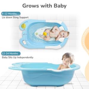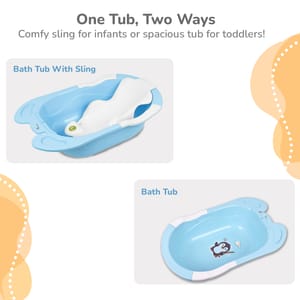 One Tub, Two Ways! From infant sling bath tub to toddler tub, R for Rabbit is introducing Bubble Double Snowy for making bathtime fun and engaging. It is curated with baby-safe PP material to provide the baby with a safe bathing time and parents with stress-free parent-child bonding. The ergonomic sling support provides optimum support for cervical development, besides providing the necessary comfort for lying and bathing the baby. It also consists of smart details like built-in toys and soap slots for easier accessibility, and also helps in keeping the children engaged during bath time. Also, the spacious, safe, anti-skid strips, smooth edges, and easy drainage make bath time both fun and engaging for the babies. In addition, its sturdy and light design provides daily comfort, portability, and durability, making R for Rabbit’s Bubble Double Snowy one of the best baby bathtubs in the market. So, order now! Key Features Safety First: R for Rabbit's Bubble Double Snowy is made from safe PP material, making it non-toxic, BPA-free, lightweight, durable, and easy to clean and maintain for the babies. Ergonomic Sling Comfort: It supports the important cervical development in the baby, besides giving them comfort and safety. This feature also makes bathing a newborn an easier task. Easy Drainage: R for Rabbit’s Bubble Double Snowy helps in optimum drainage to prevent the accumulation of unclean residues that could cause various rashes, spots, and skin conditions in the babies. This protects the baby’s sensitive skin. Safe and Smooth Edges: This product is designed to support independent bathing time with its safe and smooth edges, also making it easy to clean. Anti-Skid Strips: Designed to support the baby’s curious and adventurous behavior and prevent unwanted slips, falls, or injury. Built-in Toy & Soap Slots: Contains slots for built-in toys and soap, keeping the baby engaged and making access to soap easier during bathing. Technical Specifications Name & Address of Manufacturer: Manufactured for and Marketed By R for Rabbit Country of Origin: India Net Quantity: 1 Dimension of Product: 86 X 52 X 24 cm Product Weight: 2.30 kg Package Weight: 3.66 kg Package Dimensions: 89 X 26 X 53 cm Age Group: 0-3 Years Weight Capacity: Up to 15 kgs Material: PP Material