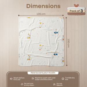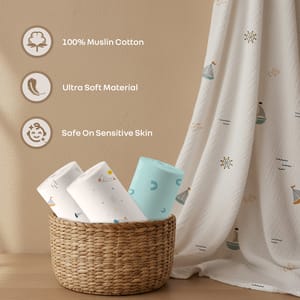 Well, R for Rabbit’s Cuddlez has just made it easier! It is made up of 100% muslin cloth, which makes it super breathable, flexible, comfortable, ultra-light-weighted and cloud-soft. Muslin fabric is also free from harsh chemicals due to the absence of other synthetic fibres, thus preventing any kinds of skin irritation or infection in babies. It also regulates a good air flow and temperature in accordance to the environment outside. R for Rabbit’s cuddlez is designed keeping the babies’ sensitive skin in the mind. Also, regular washing makes it soft without making it lose its softness or shape. R for Rabbit’s Cuddlez can be used as a nursing cover, stroller cover, burp cloth, swaddle, blanket and play mat. It is also easy to wash and maintain due to its easy drying property. So, what are you waiting for? Order R for Rabbit’s Cuddlez now! Key Features 100% Muslin Fabric: R for Rabbit’s Cuddlez is made up of 100% muslin cloth that makes it breathable, light, comfortable, skin-friendly, and super soft. It also helps in temperature regulation. Natural and Non-toxic: The muslin fabric is pure and unadulterated, thus also making it anti-bacterial and anti-allergic. This promotes a healthy and happy baby. It is also free from any harsh chemicals due to the absence of any synthetic fibres. Durable and Lightweight: R for Rabbit’s Cuddlez softens with every wash yet sustains its durability, lightweight, and flexibility. This is the magic we used to curate your happy snuggles. Multipurpose: It can be used for various purposes, like a nursing cover, stroller cover, burp cloth, swaddle, blanket, and play mat. This makes it a one-time investment with versatile usage just anywhere. Easy to Wash: R for Rabbit’s Cuddlez is also easy to wash and maintain due to its super-fast drying property. Technical Specifications Name & Address of Manufacturer: Manufactured for and Marketed By R for Rabbit Country of Origin: India Pack of: 3 Dimension of Product: 105 X 100 cms Product Weight: 0.33 kg Package Weight: 0.46 kg Package Dimensions: 23 X 6.2 X 24.2 cms Age Group: 0+ Months Material: 100% Super Compact Cotton Muslin (1" checks) 95 to100 GSM Thread Count for Swaddle: 168