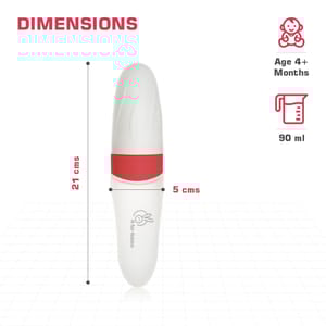 Key Features Safety 1st: First Feed Silicone Feeder is made of Food Grade Silicone Material which is BPA Free. It's absolutely safe to feed your child. Soft Spoon: Baby feeder comes with soft silicone feeder which makes it easy to intake the food/liquid and will not hurt the baby’s gums Easy To Use: First Feed Feeder can be used by simply holding it with one hand and pressing the soft silicone container to bring food on the spoon and feed the baby. Dust cover: It comes with a dust cover to keep the spoon hygienic. For Mix Of Foods: This baby spoon feeder can be used to feed juices, cereal, mashed rice, veggies, all kinds of semi-solids and so on. Kindly Note: The Product is Non-Returnable, As per the hygiene clause Wash Care Instructions 1. Use a bottle brush to gently scrub the inside of the bottle, paying attention to hard-to-reach areas. 2. Wash all parts with warm, soapy water using a mild, baby-friendly detergent. Avoid harsh or scented soaps. 3. Sterilize all new bottles, nipples, and components by boiling them in water for approximately 5-10 minutes or using a steam sterilizer. 4. Ensure thorough cleaning of nipples, including the holes. It is ideal to use a nipple brush while cleaning 5. Rinse all parts thoroughly with clean, hot water to eliminate any soap residue. 6. Avoid direct sunlight and high heat for durability. Technical Specifications Age Group: 4 Months+ Material: BPA Free Food Grade Silicone Country of Origin: PRC Name & Address of Manufacturer: Manufactured for and Marketed By R for Rabbit Net Quantity: 1
