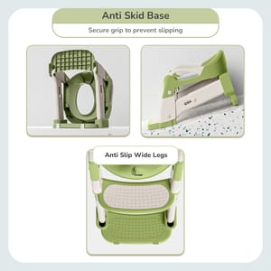 R for Rabbit is introducing Hilltop Trainer, a 2-in-1 step stool and potty seat. This potty seat easily converts to a step stool designed to serve two purposes according to your demand of the time. That is, it can either be used as a step stool to the adult toilet seat or can also become a potty seat for your tiny tots with just a simple fold. The stability of the stool is top-notch with its wide legs, anti-skid base, and pads for enhanced protection. There are also easy-to-grip built-in handles for safe and secure potty time. The step stool is adjustable, supporting baby’s growth spurts, and it also has a universal fit for almost all the adult toilet seats. It is also compact and easy to store due to its foldable design. Also, the comfortable cushions for baby’s soft and sensitive bummies are made of PVC material that makes it durable, non-porous, hygienic, easy to maintain, safe, lightweight, and water-resistant. R for Rabbit’s Hilltop Trainer is here to make the potty training fun, safe, and comfortable! Order yours now! Key Features Safety First: R for Rabbit’s Hilltop Trainer is EN71 Safety Certified and designed to promote a safe, stable, and anti-skid structure with eleven anti-skid pads to support the kids’ chaotic potty time. It also has built-in handles for extra support to promote an anti-skid and anti-slip potty time. 2-in-1 Multifunctionality: It has 2-in-1 multifunctionality that makes it feasible and also functions both as a potty seat as well as a step stool to the adult’s toilet seat. Universal Fit & Adjustable Height: It comes with a design and structure that has a universal fit for almost all the adult toilet seats and also an adjustable height to support the children’s growth spurts. It is certainly a 2-in-1 long-term investment. Easy to Maintain: R for Rabbit’s Hilltop Trainer comes with an easy and foldable structure that makes it easy to fold and store in a compact space. Comfortable Cushions: This also comes with a soft PVC material cushion, making it safe, durable, non-porous, comfortable, lightweight, and water-resistant. It also protects the baby's soft and sensitive skin. Easy to Install: R for Rabbit’s Hilltop Trainer comes with plug n play installation to make the entire process of assembling a hassle-free experience for the parents. Technical Specifications Name & Address of Manufacturer: Manufactured for and Marketed By R for Rabbit Country of Origin: PRC Net Quantity: 1 Dimension of Product: Step Stool: 36 x 17 x 53 cms Potty Seat: 36 x 45 x 29 cms Product Weight: 1.1kg Package Weight: 1.6kg Package Dimensions: 33 x 18 x 37.5 cms Age Group: 1-7Years Weight Capacity: Upto 50kgs Material: BPA Free PP Material