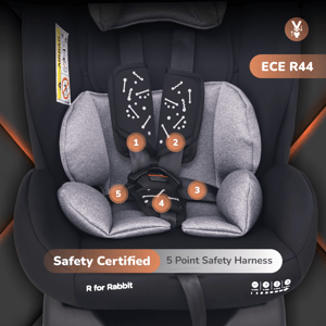 Blending innovation with thoughtful design, the R for Rabbit’s Jack N Jill NXG adapts seamlessly to your child’s evolving needs, offering cutting-edge features like dual-facing positions and advanced side impact cushioning. Additionally its removable and washable covers make maintenance a breeze. Whether it’s your newborns first ride or your 12 years olds new adventure the Jack N Jill NXG is a next generation solution ensuring unparalleled safety, comfort and convenience. Why choose ordinary when you can be extraordinary? Key Features Next Gen Safety: R for Rabbit’s Jack N Jill NXG Car Seat is ECE R44 safety certified, featuring a 5-point harness system that securely protects your child’s shoulders, hips and legs ensuring peace of mind on every journey. Advanced Side Impact Protection: R for Rabbit’s Jack N Jill NXG is designed with high quality side impact protection keeping you little one safe from bumps and jerks. Smart Seating Design: Spacious and ergonomically designed with breathable anti allergic fabric along with plush cushioning delivering advanced comfort and care for every ride. Rear Facing: Perfect for newborns ensures superior protection for their delicate head, necks and spine from 0-15 Months upto 13 kgs. Front Facing: Designed for toddlers and children from 15 months to 12 years up to 36 kgs offering enhanced mobility, comfort and safety. Technical Specifications Name & Address of Manufacturer: Manufactured for and Marketed By R for Rabbit Country of Origin: PRC Net Quantity: 1 Dimension of Product: 46cms x 51cms x 75cms Product Weight: 6.1kgs Package Weight: 7.4kgs Package Dimensions: 51cms x 45cms x 62cms Age Group: 0-12Years Weight Capacity: Upto 36kgs Material: Polyester Knitted Fabric with PP Material Base