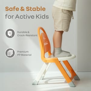69b91d8d911263ec1b033f55 R for Rabbit Jelly Bean Zippy Orange White Furniture https://www.momeaze.com/s/62960a9d8f900ec4105c601b/69b91d8f911263ec1b033f5e/download-id-1klc9uiqxu-sbrhtrv47yenisjhdewcwh.jpg R for Rabbit is introducing Jelly Bean Zippy, made from strong, crack-resistant, and stable PP material. It is a blend of strength, style and safety, ensuring durability to support the kids’ active play. This versatile kids’ companion is also ergonomically designed to support the back and provide the right amount of support, encouraging kids’ heathy posture growth and development. This chair is foldable and lightweight it can be useful for multiple activities like study, play, or active picnics in the backyard or the park. Also, the multi-functionality of the chair during studying, playing, or outdoor or indoor activities. This is also curated for modern parents with its compact and space-saving design. In addition, the stable triangular structure also provides the kids with the confidence to sit on it, without tipping or wobbling. This also provides freedom for the kids to enjoy their space. R for Rabbit’s Jean Bean Zippy is ergonomic, versatile, and comes in a cute design. Order Now. Key Features Safety First: R for Rabbit’s Jelly Bean Zippy is designed to be triangular with a stable structure to keep the chair stable and allow the kids to sit confidently without the fear of falling. Also, the smooth edges and sturdy material provide the kids with secure seating experience that supports safe and independent use. Strong & Durable: It is crafted with a crack-resistant PP material to withstand the daily wear and active play by the children. This long-lasting durability also encourages them towards repeated use, helping them build consistency and routine. Comfortable Ergonomic Design: R for Rabbit’s Jelly Bean Zippy also includes a curved backrest to promote healthy posture and support the natural spinal curve. This comfort also helps the kids stay focused during study or play, boosting their attention and engagement. Travel-Friendly & Compact: Its quick-fold design and easy to store, carry, and move mechanism also provides the child with the independence of mobility, encouraging independence and freedom to create their own space. Versatile for All Activities: R for Rabbit’s Jelly Bean Zippy is perfect for multi-use, making it perfect for study, meals, or picnics, both indoors and outdoors. It is also adaptable to support the kids’ creativity and flexible routines as they shift between activities. Technical Specifications Name & Address of Manufacturer: Manufactured for and Marketed By R for Rabbit Country of Origin: India Net Quantity: 1 Dimension of Product: Folded Dimensions: 31 (L) x 17 (B) x 62 (H) cms Open Dimension: 31 (L) x 42 (B) x 52 (H) cms Product Weight: 1.10kg Package Weight: 1.92 kg Package Dimensions: 31 (L) x 18 (B) x 62 (H) cms Age Group: 1-8 Years Weight Capacity: Upto 40 kgs Material: PP Material FNJBZOW4