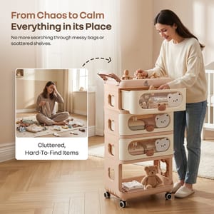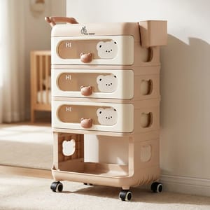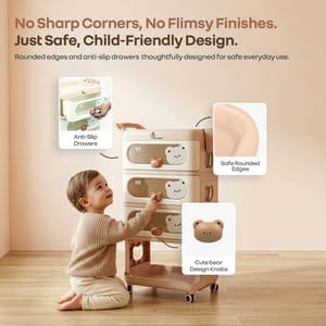 Thoughtfully designed to make life easier, this adorable organizer comes with three spacious drawers with peek-through windows, so you can quickly find diapers, clothes, or feeding essentials without any hassle. The cute teddy bear handles on the drawer make it more playful, the open bottom storage is perfect to keep your kid’s toys, makes it easy for them to reach and enjoy independently.
