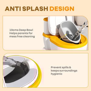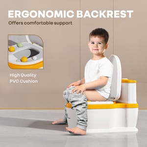 69b91be3828469f955ed48cb R for Rabbit Little Grownup Pixie White Orange Potty Seat https://www.momeaze.com/s/62960a9d8f900ec4105c601b/69b91be5828469f955ed48d5/download-id-1f3sw9drt9_hm1qfkutfaumcafyktqi3r.jpg R for Rabbit is introducing Little Grownup Pixie, a perfect mini toilet for the little learners. Suitable for aiding toddlers in the potty-training process, the potty seat is made from BPA-free materials, ensuring that their little ones stay away from any potential chemical exposure. It has an ergonomic backrest and soft cushioned seat that is fun, safe, and super comfortable. The seat has been modelled after a real toilet to assist your child in the transition using maximum ease and comfort. Lightweight and portable, it can simply be folded away or taken wherever it needs to go. Extra helpful features include a tissue compartment and a removable bowl to help foster independence and hygiene in the child at this early development stage. Again, it provides built-in music that engage and entertain a toddler during this potty-training phase. In this way, a music feature may support the child's physical comfort by simultaneously promoting sensory engagement, postural control, and good training habits. Anti-slip pads also step in here to prevent unwanted tumbles and make the child feel confident sitting upright. R for Rabbit’s Little Grownup Pixie is safe, comfortable, fun, and indeed the potty-training sidekick you never knew you needed. Order Now! Key Features Safety First: R for Rabbit’s Little Grownup Pixie is made up of BPA-free material, ensuring zero exposure to harmful chemicals and making it safe for your little one’s overall development. The anti-slip base also provides the necessary friction to protect children from unwanted skidding. Ergonomic Backrest & Soft Cushion: This thoughtful design helps in supporting the baby’s natural spine curve, promoting proper posture and reducing fatigue during sitting. The cushioned seat also reduces pressure on baby’s soft skin tissues, thus increasing their willingness to sit for longer. Integrated Tissue Storage: R for Rabbit’s Little Grownup Pixie also consists of a tissue storage, making wipes accessible for those tiny hands. This further helps in improving their hygienic habits while also inculcating independence in them. Built-In Music System: This little potty seat also includes a built-in music system to stimulate the children’s auditory learning and develop a positive association with their potty time. It would help by keeping them entertained while doing their business. Removable Bowl: R for Rabbit’s Little Grownup Pixie consists of a removable bowl to dispose of the remains with ease, while making the cleanup hassle-free. This helps in maintaining hygiene and by teaching the same to kids. Lightweight and portable: This tiny potty seat is quite light and portable, thus easy to carry anywhere. This feature also offers consistency to children’s potty training without a break, developing their habit over time. Technical Specifications Name & Address of Manufacturer: Manufactured for and Marketed By R for Rabbit Country of Origin: PRC Net Quantity: 1 Dimension of Product: 28 X 42 X 31cm Product Weight: 1.20 kg Package Weight: 1.46 kg Package Dimensions: 30 X 20 X 43cm Age Group: 1-7 Years Weight Capacity: Up to 50 kg Material: PP & TPR Material with PVC Cushion PSLGPWO02