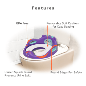 Say goodbye to the potty training struggle with R for Rabbit’s Minimo Teddy! This is your child’s most trusted partner for their potty independence. Crafted with BPA Free PP Material it is safe and gentle for your little one. The smooth non-toxic finish ensures hygiene and prevents any skin irritation for your child. From secure anti-slip pads to sturdy handles and a universal fit, R for Rabbit’s Minimo Teddy potty seat checks every box for an ideal potty training companion. It’s durable yet lightweight design is perfect for families on the go. With R for Rabbit’s Minimo Teddy potty seat, every step of potty training is safe, fun and filled with confidence. Order your R for Rabbit’s Minimo Teddy today to help your little one achieve their milestones! Key Features Adjustable Fixers: R for Rabbit’s Minimo Teddy ensures a snug and wobble-free fit on the toilet seat providing stability and security. Anti-Slip Pads: Due to the anti-slip pads the Minimo Teddy remains firmly in place ensuring your child’s safety and giving parents peace of mind. Sturdy Handles with Soft Cushioning: R for Rabbit’s Minimo Teddy has sturdy ergonomic handles helping your child feel more secure and confident during potty training. It comes with a soft cushion to provide comfort during potty training. Universal Fit: R for Rabbit’s Minimo Teddy is compatible with all toilet seats. Portable Design: Lightweight and easy to carry perfect for families on the go ensuring your child is comfortable. Technical Specifications Name & Address of Manufacturer: Manufactured for and Marketed By R for Rabbit Country of Origin: India Net Quantity: 1 Dimension of Product: 32.5 X 36.5 X 21cms Product Weight: 0.56 kg Package Weight: 1.04 kg Package Dimensions: 38 X 32 X 19 cm Age Group: 1-7 Years Weight Capacity: Upto 40kgs Material: PP Material