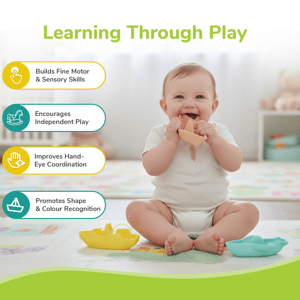 R for Rabbit is introducing Orapple Floater, splashy bath toys to sail, splash & learn. It is made up of BPA-free, food-grade silicone material, making it safe for babies and becoming a blend of giggles, discovery, and skill building in them. This floating fun makes water play and bath time fun, keeping the little ones fully engaged and entertained. Thoughtfully designed for tiny fingers, where each toy fits perfectly in little hands and mouths, floating effortlessly to transform the bathtub into a mini aquatic adventure. However, this is not just about fun, as every floater toy helps nurture fine motor, sensory development, hand-eye coordination, and shape and colour recognition skills in children. It also has no sharp edges and encourages independent play with effortless exploring, all during a bubbly bath time. It is also ideal for gifting and comes in a pack of three to turn every water play into something extraordinary. R for Rabbit’s Orapple Floater is safe, fun, stimulates kids’ sensory recognition, and is also ideal for gifting. So, make a splash and order your pack of three today! Key Features Safety First: R for Rabbit’s Orapple Floater is BIS safety certified and made up of BPA-free, food-grade silicone material that makes it safe for the kids to explore with their hands and mouth. It is soft, flexible, and free of harmful chemicals, so you can relax while they play, splash, and pretend to sail the high seas. No Sharp Edges: These floater toys are designed with a soft-touch finish, making them safe for even the youngest bathers to grip, squeeze, and maneuver with ease, boosting their confidence and fine motor skills with every play session. Encourages Independent Play: R for Rabbit’s Orapple Floater is made with an easy-to-handle design, encouraging children to engage in independent, open-ended play with a key element of cognitive growth and creativity. The independent play also helps to foster focus and a sense of accomplishment, all while keeping the kids happily occupied during bath time. Essential Developmental Skills: These floater toys are educational tools disguised as fun through simple play. This helps in enhancing the child’s fine motor, sensory, hand-eye coordination, and shape and color recognition skills. Ideal for Gifting: R for Rabbit’s Orapple Floater is made with adorable design, safe materials, and developmental benefits, making it a perfect gift for birthdays, baby shower holidays, or any special occasion. The pack of three also adds variety and value, giving the kids bath-time friends to play with. Technical Specifications Name & Address of Manufacturer: Manufactured for and Marketed By R for Rabbit Country of Origin: India Net Quantity: Pack of 3 Dimension of Product: Blue: 11 X 7 X 4 cms | Yellow: 11 X 4 X 4 cms | Pink: 11 X 6 X 5 cms Product Weight: 0.06 Kgs Package Weight: 0.09 Kgs Package Dimensions: 16 X 5X 12 cm Age Group: 6 Months + Material: BPA Free Food Grade silicone material