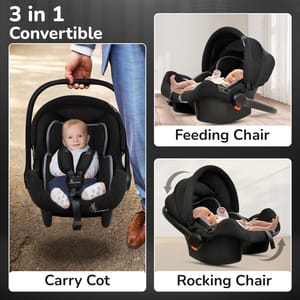 Well, R for Rabbit is here to soothe your worry with its Picaboo Sportz, 3-in-1 convertible carry cot, feeding chair, and rocker. It is designed to ensure the children's safety, providing the baby with soft comfort and the parents with ease of security. It also includes a 3-point safety harness to ensure that the baby remains snug in a place. Further, it also includes breathable fabric with soft and skin-friendly material to suit the baby’s sensitive skin. This is also designed to be portable and easy to carry anywhere. Lastly, it is also removable and washable for stress-free maintenance. R for Rabbit's Picaboo Sportz is soft, comforting, and snugly, assisting you in stress-free parenting! Order Now! Key Features Safety First: R for Rabbit’s Picaboo Sportz is designed with the child's safety in mind, featuring a 3-point secure safety harness to help the baby sit snugly. This further prevents the risk of babies slipping or falling off. 3-in-1 Convertible: This can be converted into a carry cot, feeding chair, and rocker, providing the parents with a one-time investment. Breathable Fabric: R for Rabbit's Picaboo Sportz is made up of soft and skin-friendly fabric to provide the baby with the necessary comfort. It also helps in maintaining sensitive skin. Travel-Friendly: This baby gear is portable, which means it can be carried just anywhere due to its compact storage. Easy to Clean: R for Rabbit's Picaboo Sportz also has good quality fabric. It has a removable and washable cover, making it easy to clean for stress-free maintenance. Technical Specifications Name & Address of Manufacturer: Manufactured for and Marketed By R for Rabbit Country of Origin: India Net Quantity: 1 Dimension of Product: 68 x 39 x 56 cms Product Weight: 2.84 Kgs Package Weight: 4.02 Kgs Package Dimensions: 45 X 34 X 71 cms Age Group: 0-15 Months Weight Capacity: Upto 13kgs Material: Air Mesh fabric with PP Material