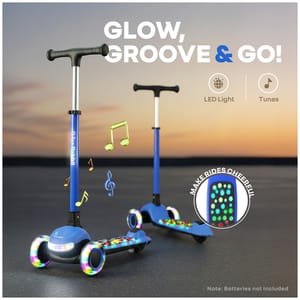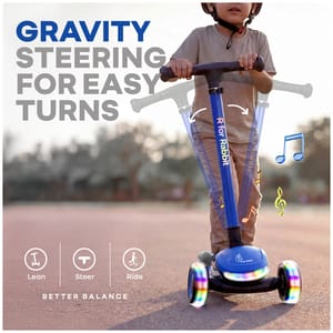 RR for Rabbit is introducing Road Runner Jazz, the scooter that doesn’t just roll, but also rocks. It is designed for little thrill-seekers with big style, and inbuilt lights for extra fun. With glowing wheels, funky tunes, and smooth-as-butter movement, it turns every scoot into a parade of fun. Also, the durable PU LED wheels with ABEC7 bearings provide an effortless movement, which aren’t just flashy, but also tough to handle every twist, turn, and tiny pebble in your path. It also has anti-slip wide footrest for strength and stability, while the gravity steering makes turning smoother than butter. And when it’s time to wrap up the fun, the smart fold design enhances it within a matter of seconds. In addition, it also has four-levels of height adjustments to make it adaptable with the child’s growing age. R for Rabbit’s Road Runner Jazz is fun, stylish, smooth, and musical. Order Now! Key Features Safety First: R for Rabbit’s Road Runner Jazz is BIS safety certified, built with wide, anti-slip footrest, to ensure security in every ride. Also, the sturdy base provides the kids with the confidence for balance and posture, building confidence with every glide. It is also perfect for developing coordination, while keeping the safety intact. Effortless Glide: Equipped with ABEC7 bearings and durable LED PU wheels, it offers a smooth ride across all surfaces. It also helps children refine their balance and motor skills, while enjoying effortless movement that feels almost magical. Lights and Beats: R for Rabbit’s Road Runner Jazz has built-in lights and cheerful music to make every ride a sensory experience. Also, the combination of rhythm and glow sparks curiosity and self-expression in children, assisting them in confidence-boosting experience. Four Levels Height Adjustment: It is also designed to keep up with your child’s growth spurts, with adjustable handlebar, ensuring long-term use and comfort. This scooter is designed to grow with your little one, becoming their best riding companion year after year. Fold, Grab, Go: R for Rabbit’s Road Runner Jazz includes smart folding design, providing the kids with an ease to fold, carry, and store the scooter even in a compact space. This develops independence and responsibility, supporting a compact, convenient, and travel-friendly adventure. Technical Specifications Name & Address of Manufacturer: Manufactured for and Marketed By R for Rabbit Net Quantity: 1 Dimension of Product: 31 X 60 X 93 cm Product Weight: 3.25 kgs Package Weight: 3.60 kgs Package Dimensions: 64.5 X 17 X 32.5 cm Age Group: 3+ Years Weight Capacity: Upto 75 kgs Material: PP with Aluminium and Steel Material