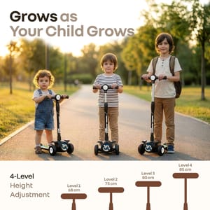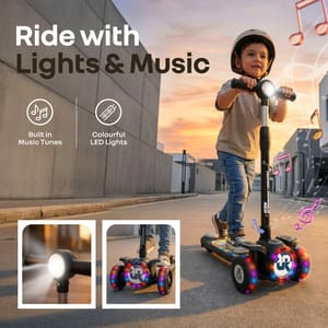 Watching your child explore the world is a moment of pride and choosing the right scooter is an important part of that journey. R for Rabbit’s Road Runner Neo Scooter is designed to give children the freedom to ride, play and grow, while giving parents the reassurance of safety, thoughtful design, and lasting quality. It is BIS safety certified to meet the stringent quality and child safety standards giving parents complete peace of mind. It brings together stability, comfort, and excitement in a way that supports both fun and responsible play. R For Rabbits Road Runner Neo features a wide stable base for proper balance, smooth gliding wheels for effortless movement and gravity steering that allows your little one to stay in control naturally. The amusing lights and built in music transform every ride into a delightful experience encouraging kids to stay active and outdoors longer. Road Runner Neo comes with 4 level of height adjustment and smart fold design which allows the scooter to grow with your child and makes it convenient for parents. R for Rabbit’s Road Runner Neo is your child’s perfect companion that nurtures confidence, coordination and independence making every ride safe, enjoyable and memorable. Key Features Superior Safety & Stability: R for Rabbit’s Road Runner Neo is BIS safety certified with wide wheel base, anti-slip wide footrest and a reliable anti slip rear brake ensuring maximum balance & control. This helps children ride with confidence while developing balance & coordination. Smooth & Effortless Riding Experience: Equipped with durable LED PU wheels and high quality ABEC7 bearings the Road Runner Neo delivers smooth, quite and effortless movement on various surfaces. Engaging Lights & Music with Smart Fold: R for Rabbits Road Runner Neo comes with colourful LED lights and built in music that makes rides exciting and encourages longer and more joyful outdoor play. The smart fold design allows for quick and easy storage. Grows with your little one: The 4-level height adjustment adapts perfectly to your child’s growth over the years. It ensures proper poster and comfort at every stage for long term usability. Easy Control with Gravity Steering: R for Rabbit’s Road Runner Neo has gravity steering system that allows children to steer naturally by leaning, which enhances motor skills and body coordination while allowing younger riders to steer safely and comfortably. Technical Specifications Name & Address of Manufacturer: Manufactured for and Marketed By R for Rabbit Country of Origin: India Net Quantity: 1 Dimension of Product: 26 X 60 X 85 cms Product Weight: 2.42 kg Package Weight: 3.12 kg Package Dimensions: 67 x 17 x 31 cm Age Group: 3+ Years Weight Capacity: Upto 75 kgs Material: PP Material