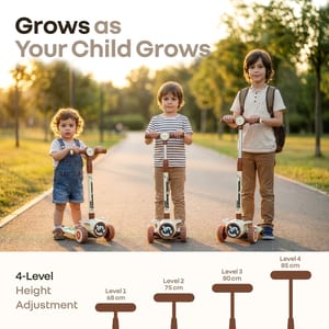 Watching your child explore the world is a moment of pride and choosing the right scooter is an important part of that journey. R for Rabbit’s Road Runner Neo Scooter is designed to give children the freedom to ride, play and grow, while giving parents the reassurance of safety, thoughtful design, and lasting quality. It is BIS safety certified to meet the stringent quality and child safety standards giving parents complete peace of mind. It brings together stability, comfort, and excitement in a way that supports both fun and responsible play. R For Rabbits Road Runner Neo features a wide stable base for proper balance, smooth gliding wheels for effortless movement and gravity steering that allows your little one to stay in control naturally. The amusing lights and built in music transform every ride into a delightful experience encouraging kids to stay active and outdoors longer. Road Runner Neo comes with 4 level of height adjustment and smart fold design which allows the scooter to grow with your child and makes it convenient for parents. R for Rabbit’s Road Runner Neo is your child’s perfect companion that nurtures confidence, coordination and independence making every ride safe, enjoyable and memorable. Key Features Superior Safety & Stability: R for Rabbit’s Road Runner Neo is BIS safety certified with wide wheel base, anti-slip wide footrest and a reliable anti slip rear brake ensuring maximum balance & control. This helps children ride with confidence while developing balance & coordination. Smooth & Effortless Riding Experience: Equipped with durable LED PU wheels and high quality ABEC7 bearings the Road Runner Neo delivers smooth, quite and effortless movement on various surfaces. Engaging Lights & Music with Smart Fold: R for Rabbits Road Runner Neo comes with colourful LED lights and built in music that makes rides exciting and encourages longer and more joyful outdoor play. The smart fold design allows for quick and easy storage. Grows with your little one: The 4-level height adjustment adapts perfectly to your child’s growth over the years. It ensures proper poster and comfort at every stage for long term usability. Easy Control with Gravity Steering: R for Rabbit’s Road Runner Neo has gravity steering system that allows children to steer naturally by leaning, which enhances motor skills and body coordination while allowing younger riders to steer safely and comfortably. Technical Specifications Name & Address of Manufacturer: Manufactured for and Marketed By R for Rabbit Country of Origin: India Net Quantity: 1 Dimension of Product: 26 X 60 X 85 cms Product Weight: 2.42 kg Package Weight: 3.12 kg Package Dimensions: 67 x 17 x 31 cm Age Group: 3+ Years Weight Capacity: Upto 75 kgs Material: PP Material