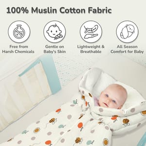 The more comfortable the bedding, the more peaceful the sleep! R for Rabbit is here for your stress-free parenting hack with baby’s undisturbed sleep and a blissful time with its softest, coziest, and most huggable Snuggy Bliss. It is made up of 100% muslin cotton fabric with ultra-soft cushioning and breathable fabric. This cozy bedding is ideal for newborns and infants as it provides them with the required attention and care against their super sensitivity. It also comes with a premium zipper closure for a snug and secure fit and is also designed for easier maintenance with its easy washing. Also, it is portable; hence, be it a cozy, comfortable afternoon in a dimly lit room, a flighty ride, or a comfy stroll in the park with the stroller, this snuggy bedding is all you need for your little one! R for Rabbit’s Snuggy Bliss is soft, breathable, and portable and also comes in cute designs and colors! Order Now! Key Features 100% Muslin Cotton Fabric: R for Rabbit’s Snuggy Bliss is made of 100% muslin cotton fabric, which is considered the best material for any season due to its ultra-absorbency. This further prevents rashes, itchiness, or infections of any kind in the babies, thus protecting their well-being. Premium Zipper Closure: It comes with an amazing zipper to keep the baby safe, secure, and comfortable, and thus, prevent the risk of slipping or falling off. Lightweight: R for Rabbit’s Snuggy Bliss is designed to be lightweight for comfortable carrying, thus providing the parents with the ease of holding, cuddling, cradling, and carrying the baby around. Travel Friendly: It is also designed to be travel-friendly, providing a stress-free ease for the parents in carrying the baby. Style Meets Comfort: R for Rabbit's Snuggy Bliss comes in cute designs and colors to provide a hint of chic bedding for the babies! Technical Specifications Name & Address of Manufacturer: Manufactured for and Marketed By R for Rabbit Country of Origin: India Net Quantity: 1 Dimension of Product: 61 X 38 cms Product Weight: 0.28 kgs Package Weight: 0.36 Kgs Package Dimensions: 38 X 13 X 33 cms Age Group: 0-6months Weight Capacity: Upto 9kgs Material: 100% Muslin Cotton Fabric