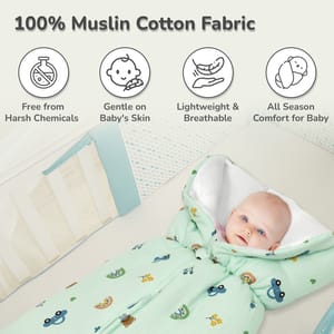 The more comfortable the bedding, the more peaceful the sleep! R for Rabbit is here for your stress-free parenting hack with baby’s undisturbed sleep and a blissful time with its softest, coziest, and most huggable Snuggy Bliss. It is made up of 100% muslin cotton fabric with ultra-soft cushioning and breathable fabric. This cozy bedding is ideal for newborns and infants as it provides them with the required attention and care against their super sensitivity. It also comes with a premium zipper closure for a snug and secure fit and is also designed for easier maintenance with its easy washing. Also, it is portable; hence, be it a cozy, comfortable afternoon in a dimly lit room, a flighty ride, or a comfy stroll in the park with the stroller, this snuggy bedding is all you need for your little one! R for Rabbit’s Snuggy Bliss is soft, breathable, and portable and also comes in cute designs and colors! Order Now! Key Features 100% Muslin Cotton Fabric: R for Rabbit’s Snuggy Bliss is made of 100% muslin cotton fabric, which is considered the best material for any season due to its ultra-absorbency. This further prevents rashes, itchiness, or infections of any kind in the babies, thus protecting their well-being. Premium Zipper Closure: It comes with an amazing zipper to keep the baby safe, secure, and comfortable, and thus, prevent the risk of slipping or falling off. Lightweight: R for Rabbit’s Snuggy Bliss is designed to be lightweight for comfortable carrying, thus providing the parents with the ease of holding, cuddling, cradling, and carrying the baby around. Travel Friendly: It is also designed to be travel-friendly, providing a stress-free ease for the parents in carrying the baby. Style Meets Comfort: R for Rabbit's Snuggy Bliss comes in cute designs and colors to provide a hint of chic bedding for the babies! Technical Specifications Name & Address of Manufacturer: Manufactured for and Marketed By R for Rabbit Country of Origin: India Net Quantity: 1 Dimension of Product: 61 X 38 cms Product Weight: 0.28 kgs Package Weight: 0.36 Kgs Package Dimensions: 38 X 13 X 33 cms Age Group: 0-6months Weight Capacity: Upto 9kgs Material: 100% Muslin Cotton Fabric