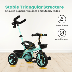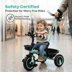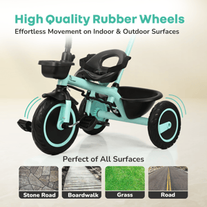 Tiny Toes R20 Plus Plug & Play Tricycle for Kids Kids love to enjoy the evening play time; you can double the fun for your child. Do you know how? R for Rabbit brings you Tiny Toes R20 Plus Smart Plug & Play Baby Tricycle. Tiny Toes R20 Plus is a classy-looking tricycle for kids with all the safety features loaded and blended with cute features. Absolutely comfortable for the little one, this Tricycle has smart parental control to never let your child go off track. Top quality rubber wheels to let your child enjoy the ride. Tiny Toes R20 Plus tricycle for a baby is the perfect tricycle to be. Key Features BIS Safety First: Tiny Toes R20 Plus tricycle is a BIS safety certified tricycle for kids. It is loaded with safety features to make riding time absolutely safe for your little one. Classy Design: Cute, elegant design tricycle is truly adorable for your baby. Plug & Play: The tricycle is very easy to install as it comes with Plug & Play feature Top Quality Rubber Wheels: R for Rabbit Tiny Toes R20 Plus is having high quality rubber wheels to make the tricycle run smoothly and let your child have fun. Adjustable Parental Control: Smart looking parental control to keep the tricycle on safe track Front & Rear Basket: Let the child take the small little toys and necessities together Technical Specifications Name & Address of Manufacturer: Manufactured for and Marketed By R for Rabbit Country of Origin: India Net Quantity: 1 Dimension of Product: 85cm (L) X 52cm (B) X 111cm (H) Product Weight: 7.52 kg Package Weight: 8.62 kg Package Dimensions: 58.5 x 36 x 31.3 cm Age Group: 2-5 Years Weight Capacity: Upto 25kgs Material: High Quality Steel Body with rubber wheels