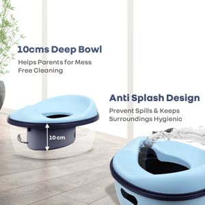 Toilet training is a major developmental milestone, and R for Rabbit’s Tiny Tots Mellow is a confident start to developing independence, making it stress-free, safer, and smarter. This product is designed to be safety certified with BPA-free materials to prevent the risk of exposure to harmful chemicals. It has a 3-in-1 convertible system that is designed to transition from a potty chair to a step stool to a toilet training seat, creating every phase of your child’s potty-training journey. This tiny toilet seat is ergonomically designed to support your child’s autonomy, promote proper posture, reduce their unnecessary fear and anxiety, and develop essential motor skills and balance, besides also inculcating hygienic habits in them. This potty seat is also lightweight, making it portable, with anti-slippery pads for secure stability. It also has a detachable and easy-to-hang seat, serving as a space-saving storage. In addition, the detachable bowl also makes it easier to maintain the necessary hygiene. R for Rabbit’s Tiny Tots Mellow is safe, smart, multipurpose, and a smart, adaptive parenting tool for the essential milestone development in the kids. Order Now! Key Features Safety First: R for Rabbit’s Tiny Tots Mellow is made from BPA-free material, complying with the child safety regulations. This makes it sensitive-skin friendly and safer for close, frequent use, reducing the risk of potential irritation, skin infection, or chemical leaching. 3-in-1 Convertible with Ergonomic Design: This potty seat’s convertibility from a standalone potty seat into a step stool and a toilet trainer seat perfectly aligns with the children’s training stages. It also promotes growth and development without needing new products at every stage. In addition, the ergonomic design ensures proper posture and assists in developing fine motor, balance, and other skills in the children. Removable Bowl: R for Rabbit’s Tiny Tots Mellow also has a removable bowl for an easy and quick disposal and rinsing. This makes cleaning up stress-free and hygienic, besides reducing the possible germ retention and ensuring bacterial safety for your child. Lightweight & Portable: It is designed to be compact and lightweight, making it easy to carry just anywhere and anytime. This promotes consistency and also reinforces routine and habits in children. Stable Design with Anti-Slip Pads: R for Rabbit’s Tiny Tots Mellow is designed to be skid-free, with a wider base to reduce the risk of falling and unwanted accidents. It also promotes confidence, independence, and trust in the children, besides reducing the fear of potty training. Detachable & Hangable Seat: The seat detaches easily and hangs neatly, ideal for modern homes supporting an organized environment. Well-arranged, predictable spaces also help toddlers feel secure, reduce their overstimulation, and support their better focus and behavior. Technical Specifications Name & Address of Manufacturer: Manufactured for and Marketed By R for Rabbit Country of Origin: PRC Net Quantity: 1 Dimension of Product: 28 X 24 X 19 cm Product Weight: 0.76 kg Package Weight: 1 kg Package Dimensions: 28.5 x 20 x 33.5 cm Age Group: 1-5 Years Weight Capacity: Up to 20kgs Material: PP Material