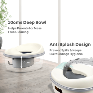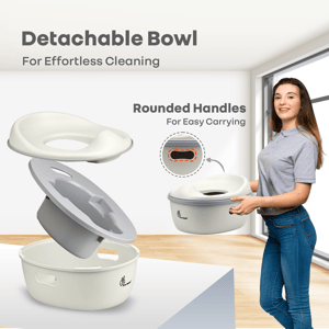 Toilet training is a major developmental milestone, and R for Rabbit’s Tiny Tots Mellow is a confident start to developing independence, making it stress-free, safer, and smarter. This product is designed to be safety certified with BPA-free materials to prevent the risk of exposure to harmful chemicals. It has a 3-in-1 convertible system that is designed to transition from a potty chair to a step stool to a toilet training seat, creating every phase of your child’s potty-training journey. This tiny toilet seat is ergonomically designed to support your child’s autonomy, promote proper posture, reduce their unnecessary fear and anxiety, and develop essential motor skills and balance, besides also inculcating hygienic habits in them. This potty seat is also lightweight, making it portable, with anti-slippery pads for secure stability. It also has a detachable and easy-to-hang seat, serving as a space-saving storage. In addition, the detachable bowl also makes it easier to maintain the necessary hygiene. R for Rabbit’s Tiny Tots Mellow is safe, smart, multipurpose, and a smart, adaptive parenting tool for the essential milestone development in the kids. Order Now! Key Features Safety First: R for Rabbit’s Tiny Tots Mellow is made from BPA-free material, complying with the child safety regulations. This makes it sensitive-skin friendly and safer for close, frequent use, reducing the risk of potential irritation, skin infection, or chemical leaching. 3-in-1 Convertible with Ergonomic Design: This potty seat’s convertibility from a standalone potty seat into a step stool and a toilet trainer seat perfectly aligns with the children’s training stages. It also promotes growth and development without needing new products at every stage. In addition, the ergonomic design ensures proper posture and assists in developing fine motor, balance, and other skills in the children. Removable Bowl: R for Rabbit’s Tiny Tots Mellow also has a removable bowl for an easy and quick disposal and rinsing. This makes cleaning up stress-free and hygienic, besides reducing the possible germ retention and ensuring bacterial safety for your child. Lightweight & Portable: It is designed to be compact and lightweight, making it easy to carry just anywhere and anytime. This promotes consistency and also reinforces routine and habits in children. Stable Design with Anti-Slip Pads: R for Rabbit’s Tiny Tots Mellow is designed to be skid-free, with a wider base to reduce the risk of falling and unwanted accidents. It also promotes confidence, independence, and trust in the children, besides reducing the fear of potty training. Detachable & Hangable Seat: The seat detaches easily and hangs neatly, ideal for modern homes supporting an organized environment. Well-arranged, predictable spaces also help toddlers feel secure, reduce their overstimulation, and support their better focus and behavior. Technical Specifications Name & Address of Manufacturer: Manufactured for and Marketed By R for Rabbit Country of Origin: PRC Net Quantity: 1 Dimension of Product: 28 X 24 X 19 cm Product Weight: 0.76 kg Package Weight: 1 kg Package Dimensions: 28.5 x 20 x 33.5 cm Age Group: 1-5 Years Weight Capacity: Up to 20kgs Material: PP Material