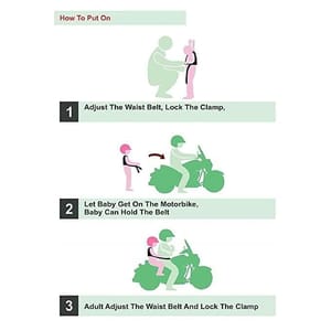 Two Wheeler Safety Belt- Parent Belt Size Maximum 144cm x 12cm Child Belt Size Maximum 80cm x 12cm