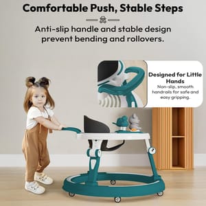 The Baby Walkers for 6-18 month Baby Boy Girl provides a padded seat that is removable for washing. The walker for kids folds flat for easy storage and travel. Walker for Kids has seven height adjustment settings for a customised ride that can be adjusted according to the infant’s needs. The baby walker comes with a detachable toy tray that can easily be detached and converted into a dining tray, making the baby’s mealtime tidy and mess-free. Parents can easily change the walker into an infant push walker as it contains an anti-slip push handle on the back of the baby walker, helping babies develop sensory independence. StarAndDaisy multifunctional baby wlaker early education features an interactive fun-to-use swing bar and colourful toys to stimulate the little one’s brain. StarAndDaisy makes multifunctional baby walkers that can help to support the development, balance, and safe growth of a child, making parenting easier and convenient by offering features such as height adjustment and trays that can be detached. Return and exchange policies: 1. Non - Returnable 2. Exchangeable in case of product damage or if the product is expired (Terms and Conditions applied) Terms & Conditions: 1. The product should not be opened 2. Image of the product with the invoice must be provided