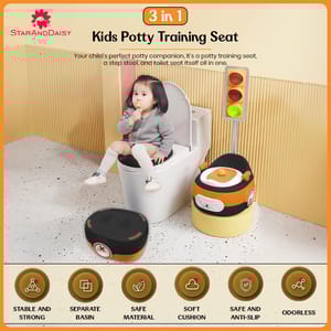 Make potty training safe, comfortable, and convenient with the StarAndDaisy potty seat for kids 1-5 years. This versatile potty training seat doubles as a baby potty seat, potty seat for kids, and toilet seat cover for kids, making it ideal for toddlers learning to use the toilet. The StarAndDaisy potty seat features a comfortable 3-in-1 design with a removable pot for easy use and cleaning. The soft cushion ensures a cozy seating experience for your child, while the splash guard prevents messes during potty training. Its easy-to-clean surface and anti-skid legs provide hygiene and safety, keeping the seat securely in place on any standard toilet. Perfect for home use, this potty seat combines practicality, comfort, and safety. Whether you need a baby potty seat, potty training seat, or potty seat for kids, the StarAndDaisy 3-in-1 potty seat makes potty training stress-free, clean, and fun for both toddlers and parents. Return and exchange policies: 1. Non - Returnable 2. Exchangeable in case of product damage or if the product is expired (Terms and Conditions applied) Terms & Conditions: 1. The product should not be opened 2. Image of the product with the invoice must be provided