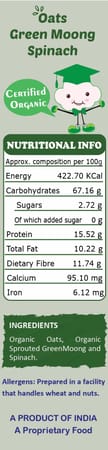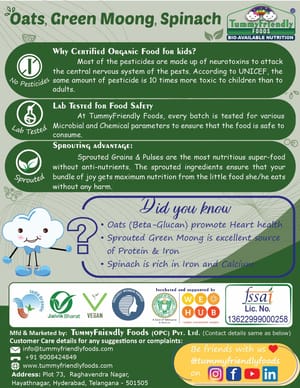 TummyFriendly Foods Certified Organic Oats, Green Moong, Spinach Porridge Mix | Organic Baby Food for 8 Months Old | Made of Sprouted Whole Green Moong | Rich in Iron, Protein & Micro-Nutrients | 200g Cereal (200 g)