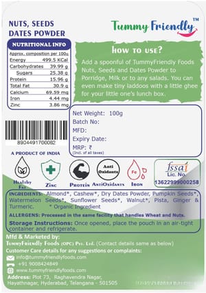 TummyFriendly Foods Premium Nuts, Seeds and Dates Powder | Dry Fruits Powder Baby (100g each pack)