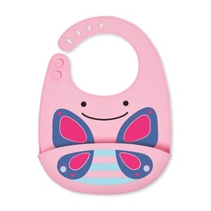 68f52f0190173a67ac14e06f Skip Hop Zoo Fold & Go Silicone Bib https://www.momeaze.com/s/62960a9d8f900ec4105c601b/69ae6243fbd8d2a1532137c2/download-id-1n-zn7yluc0vlskdkqkemigq083d0ermm.jpg Ages 6m+ Satintouch, foodsafe silicone material Comfortable, adjustable neck strap Deep pocket catches crumbs Wipes down for quick cleanup Dishwasher safe; top rack only BPAfree, PVCfree, Phthalatefree Size (inches): 10.25l x 1.5w x 11h 232202