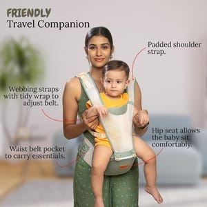 With six different carry positions, including front facing in, front facing out, hip seat mode, and back carry, this baby carrier adapts to your growing child's needs, ensuring both comfort and convenience for parents and caregivers. The adjustable straps and ergonomic design provide optimal support for babies from newborn to two years old. The baby carrier features cushioned leg support and a padded waist belt to ensure your baby's comfort during extended periods of wear. The sturdy buckle and straps offer a secure fit, while the breathable fabric keeps both you and your little one cool and comfortable, whether you're running errands or exploring the outdoors. Crafted from high-quality materials, this baby carrier is built to last. The durable fabric can withstand daily wear and tear, while the reinforced stitching ensures long-lasting durability. Plus, the adjustable design allows both parents to comfortably wear the carrier, making it a practical choice for families on the go. Designed with busy parents in mind, this baby carrier is easy to put on and take off, with simple buckle closures and adjustable straps for a customized fit. The detachable hip seat provides added versatility, allowing you to use the carrier as a standalone hip seat when needed. Plus, the compact design makes it easy to store and transport when not in use. Say goodbye to bulky baby carriers that cramp your style. The sleek and modern design of this carrier complements any outfit, while the practical features make it a must-have accessory for parents on the move. Whether you're out for a stroll in the park or tackling your daily chores, this baby carrier ensures you can keep your little one close while enjoying hands-free convenience.