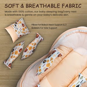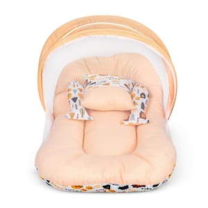 BNB4013_ORSERVE MULTIPLE PURPOSES - New born baby nest, baby lounger is perfect travel portable bedding mattress. Newborn lounger is perfect for co-sleeping. Baby nest co sleeper to serve multiple purposes such as rest spot, tummy time and travel mat, it's easy to carry around the house. Nest bedding set is a portable and travel bed, a play mat and even a co sleeper. This newborn lounger mattress with head pillow, 2 Bolster and mosquito net is designed to prevents the baby from rolling out of the bed, creates a safe space for baby to sleep in bed with parents. Your baby will surely longer and comfortable sleep in this soft baby lounger pillow. This is also perfect for co-sleeping as it provides a safe space for the baby on the parents bed. The newborn sleeping bed is made of super soft pearl cotton & Fiberfill as the filling's material, no harmful substances will cause any harm to the baby, better protection for baby's spine. Using thicker fabric, so there will be no problems such as deformation and fading after machine washing. Soft cotton printed baby mattress with mosquito net and pillow is perfect for 0-12 months babies with attached mosquito net allows fresh air to breeze in, while blocks out insects and mosquitoes and dust. The mosquito net bed make sure your infant gets a good nights sleep without the danger of insect bites. This bedding set is ideal for keeping your baby well rested and comfortable day in and night out. This set can be a great gifting option for a friend expecting mother or a baby boys & baby girls or as a baby shower gift, or for someone who already has a baby boy and baby girl. It includes Carry bedding set required for comfortably sleeping for your newborn baby.