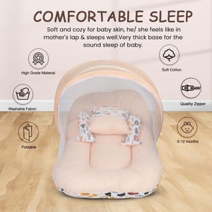 SERVE MULTIPLE PURPOSES - New born baby nest, baby lounger is perfect travel portable bedding mattress. Newborn lounger is perfect for co-sleeping. Baby nest co sleeper to serve multiple purposes such as rest spot, tummy time and travel mat, it's easy to carry around the house. Nest bedding set is a portable and travel bed, a play mat and even a co sleeper. This newborn lounger mattress with head pillow, 2 Bolster and mosquito net is designed to prevents the baby from rolling out of the bed, creates a safe space for baby to sleep in bed with parents. Your baby will surely longer and comfortable sleep in this soft baby lounger pillow. This is also perfect for co-sleeping as it provides a safe space for the baby on the parents bed. The newborn sleeping bed is made of super soft pearl cotton & Fiberfill as the filling's material, no harmful substances will cause any harm to the baby, better protection for baby's spine. Using thicker fabric, so there will be no problems such as deformation and fading after machine washing. Soft cotton printed baby mattress with mosquito net and pillow is perfect for 0-12 months babies with attached mosquito net allows fresh air to breeze in, while blocks out insects and mosquitoes and dust. The mosquito net bed make sure your infant gets a good nights sleep without the danger of insect bites. This bedding set is ideal for keeping your baby well rested and comfortable day in and night out. This set can be a great gifting option for a friend expecting mother or a baby boys & baby girls or as a baby shower gift, or for someone who already has a baby boy and baby girl. It includes Carry bedding set required for comfortably sleeping for your newborn baby.