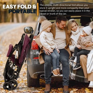B958-PRThe Baybee Portable baby stroller comes with a backrest of the baby stroller can be reclined from 100 to 160 for sitting, lying, or sleeping. You can also make a corresponding adjustment to the footrest for the most comfortable position. What s more, the canopy can be adjusted freely according to different weather conditions, providing the best rest environment for the baby. Our baby stroller with features that create a superior and exceptionally safe ride for the baby, this stroller comes with a 5-point safety harness to keep the baby securely strapped in. Reflective material on the safety harness and piping enables safe nighttime strolls. The Portable Stroller comes with a parental view back which is easy for parents to view while pushing the stroller, It has a Large easy-to-access storage basket that holds all baby's necessities. a large bottle pouch on the back for parents and a bottle holder on the safety bar. The Infant Stroller comes with double front wheels and dual single back wheels, that make it easy to glide over bumps in the road, creating an effortlessly smooth ride. The linked brakes lock both rear wheels by pressing a single pedal. Unlock the wheels for easy maneuverability; lock them for added stability on bumpy surfaces. It comes with a foldable design, you can fold the baby stroller quickly and conveniently. And the folding infant pram stroller is easy to store. What s more, this baby stroller has a large storage basket on the bottom that permits you to keep your everyday items on for easy access.