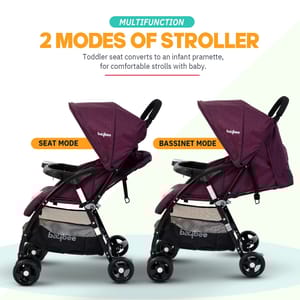 The Baybee Portable baby stroller comes with a backrest of the baby stroller can be reclined from 100 to 160 for sitting, lying, or sleeping. You can also make a corresponding adjustment to the footrest for the most comfortable position. What s more, the canopy can be adjusted freely according to different weather conditions, providing the best rest environment for the baby. Our baby stroller with features that create a superior and exceptionally safe ride for the baby, this stroller comes with a 5-point safety harness to keep the baby securely strapped in. Reflective material on the safety harness and piping enables safe nighttime strolls. The Portable Stroller comes with a parental view back which is easy for parents to view while pushing the stroller, It has a Large easy-to-access storage basket that holds all baby's necessities. a large bottle pouch on the back for parents and a bottle holder on the safety bar. The Infant Stroller comes with double front wheels and dual single back wheels, that make it easy to glide over bumps in the road, creating an effortlessly smooth ride. The linked brakes lock both rear wheels by pressing a single pedal. Unlock the wheels for easy maneuverability; lock them for added stability on bumpy surfaces. It comes with a foldable design, you can fold the baby stroller quickly and conveniently. And the folding infant pram stroller is easy to store. What s more, this baby stroller has a large storage basket on the bottom that permits you to keep your everyday items on for easy access.