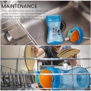Lower straw is bent for easy drinking till the last sip. Easy to assemble and clean, dishwasher safe. Flip cap to keep the straw clean and hygenic. Can be used with nipple as feeding bottle, with straw as sippler cup, two handle keeps the bottle spill free.