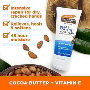 4355Delivery in 5-7 working days Heal and Soften dry, cracked hands with Palmer's Cocoa Butter Formula Hand Cream, crafted with intensively moisturizing Cocoa Butter and Vitamin E.